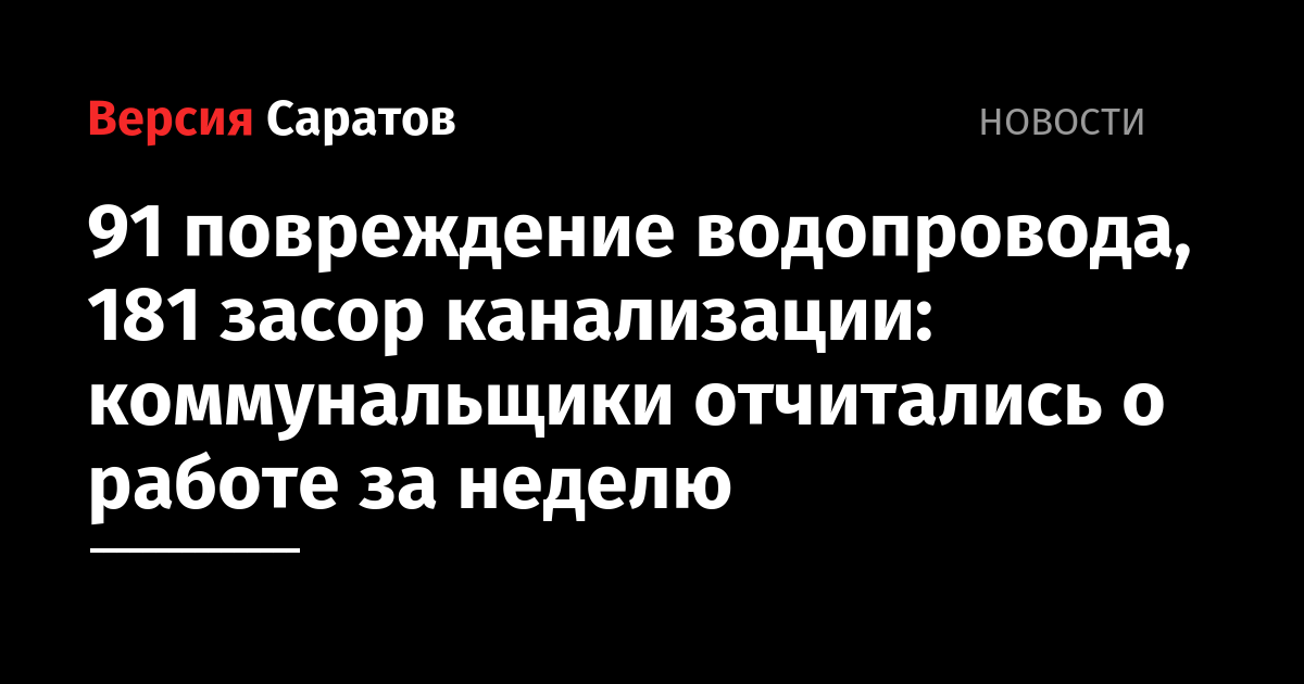 91 повреждение водопровода, 181 засор канализации: коммунальщики отчитались о работе за неделю