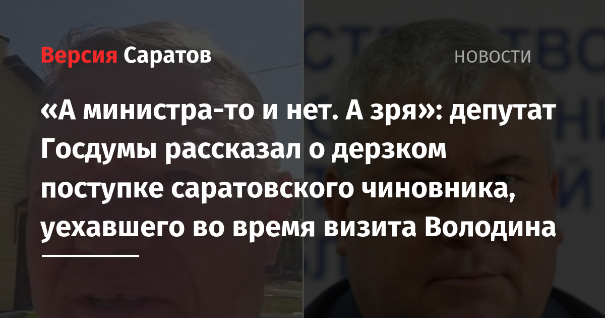 «А министра-то и нет. А зря»: депутат Госдумы рассказал о дерзком поступке саратовского чиновника, уехавшего во время визита Володина