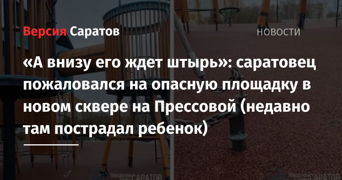 Опасения саратовца, к сожалению, были высказаны уже после неприятного инцидента. Вчера, 9 ноября, в сквере на Прессовой уже травмировался ребенок. Фото с места ЧП появились в том же Telegram-канале «Саратов (Заводской район)».
