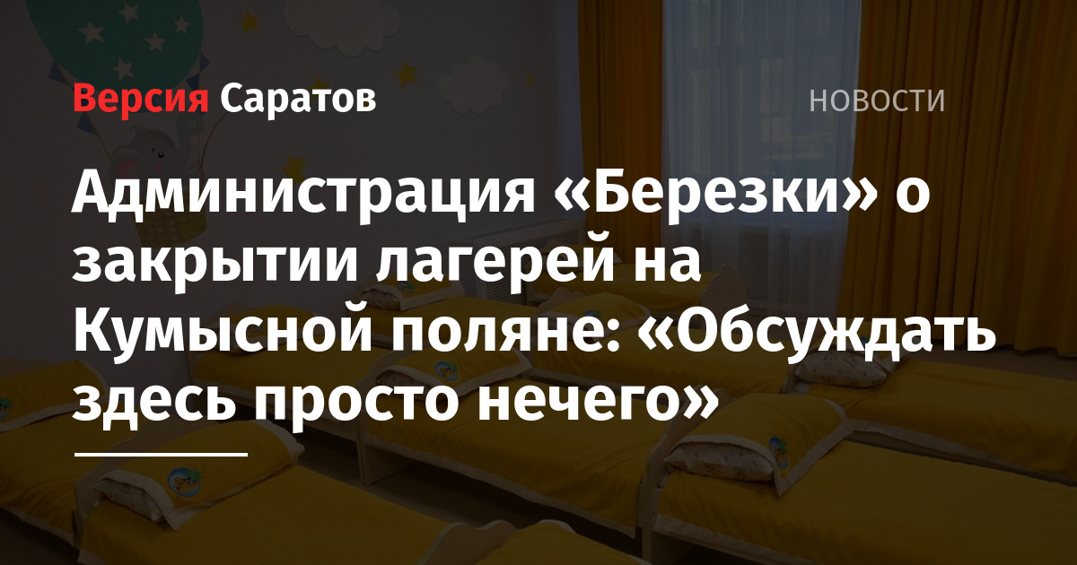 Администрация лагеря «Березка» поддержала решение саратовских властей об «ограничении» работы лагерей на Кумысной поляне. Комментарий исполнительного директора Бориса Амхира опубликовали на странице АНО СОЦ «Берёзка» в соцсети «ВКонтакте».