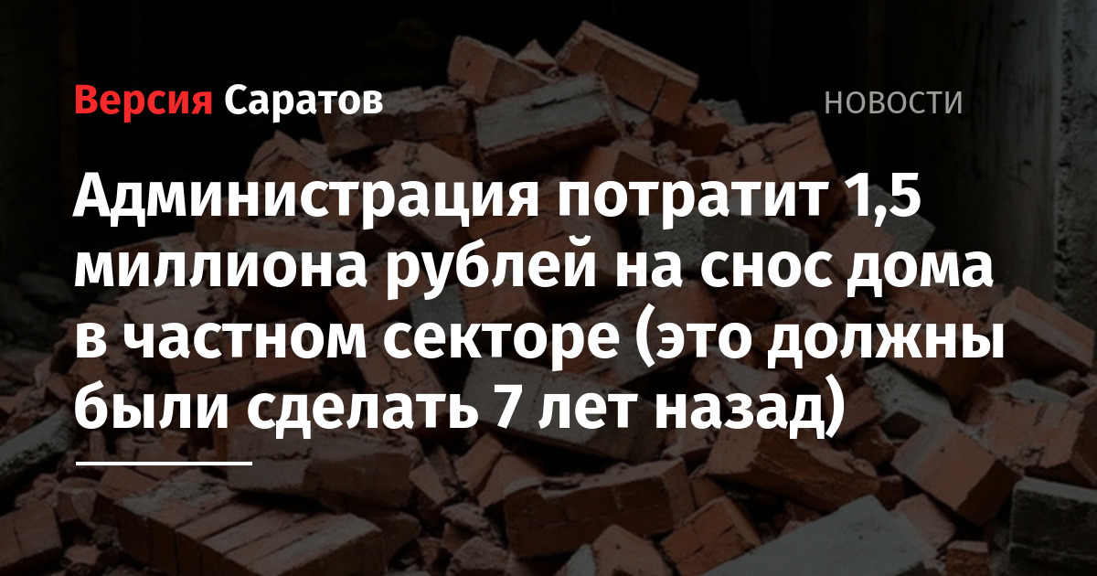 Теперь «аварийку» решили снести. Тому, кто сровняет строение с землей и вывезет строительный мусор, готовы заплатить 1,5 миллиона рублей. Подрядчику нужно уложиться в 30 дней после подписания договора.