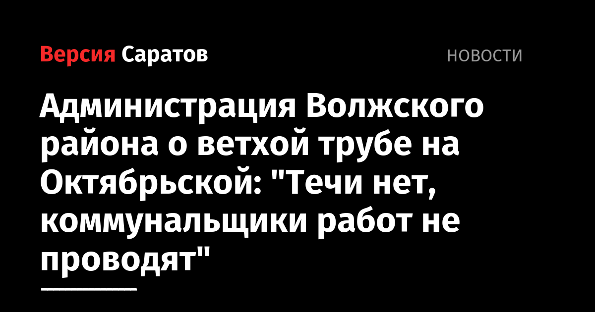 Со ссылкой на МУПП "Саратовводоканал" чиновники сообщают, что в настоящее время у дома № 47 на улице Октябрьской холодная вода из трубы не льется, коммунальщики каких-либо работ не проводят.