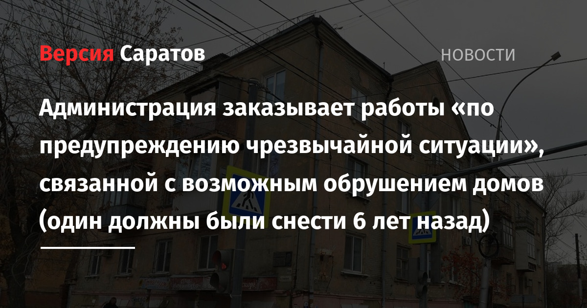 Администрацией Заводского района Саратова объявлены аукционы, предметом которых является «проведение работ по предупреждению чрезвычайных ситуаций, связанных с возможным обрушением строительных конструкций аварийных домов».