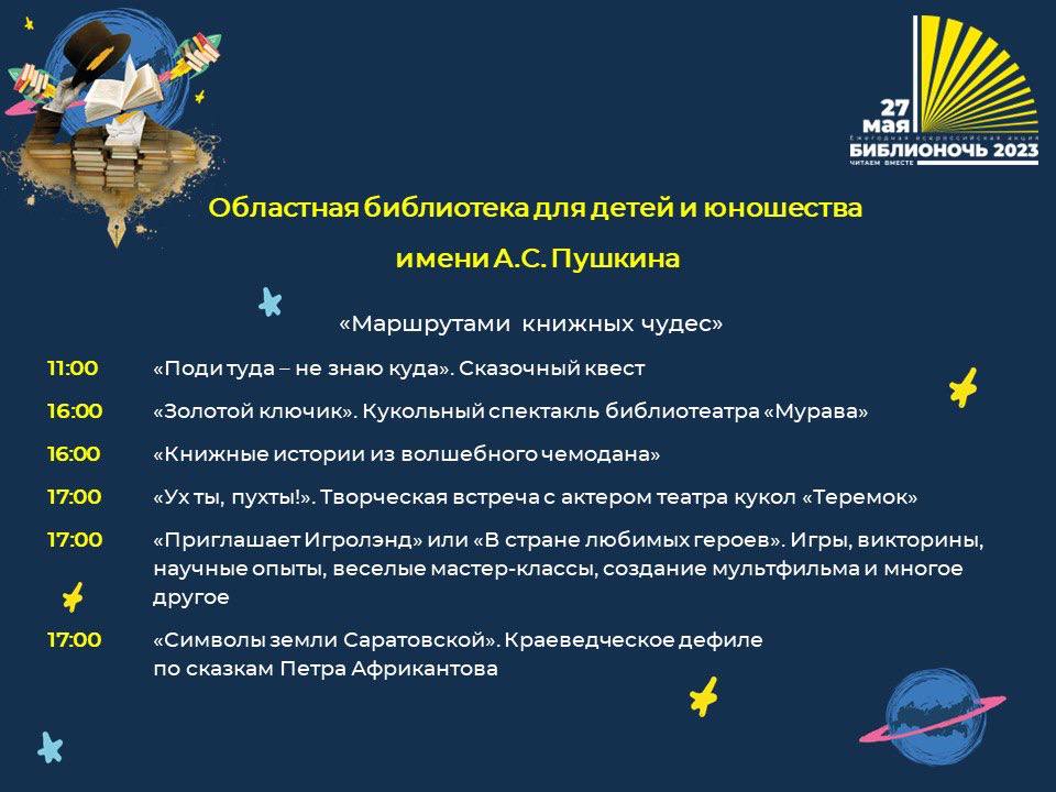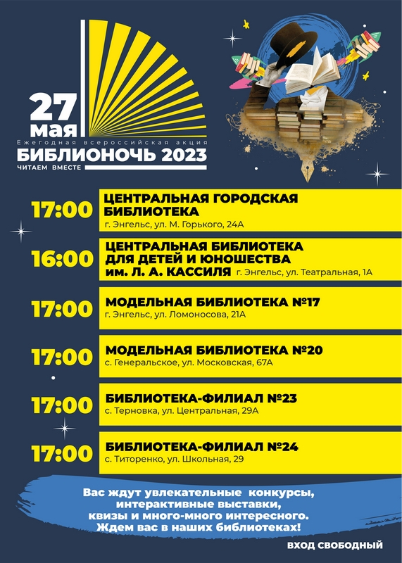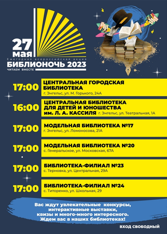 Акция «Библионочь» сегодня также пройдет в Энгельсе, Ртищево, Петровске. С подробной афишей можно ознакомиться ниже в галерее.