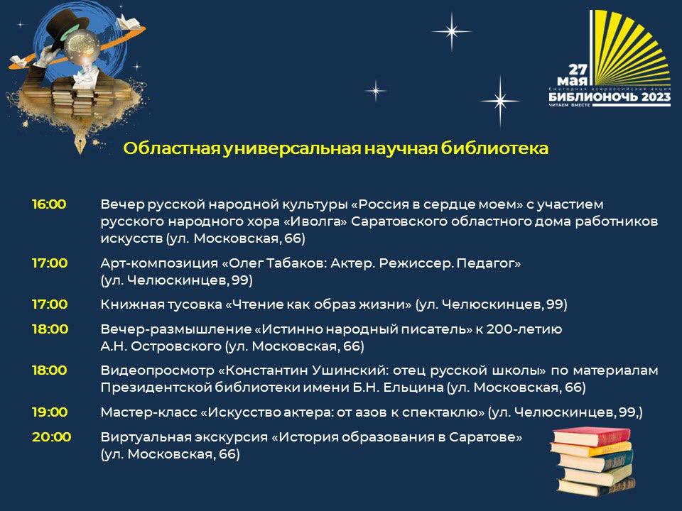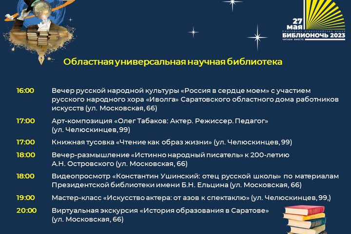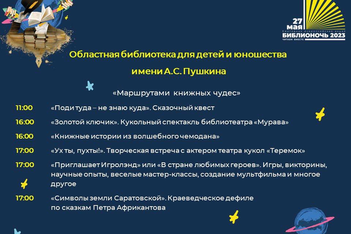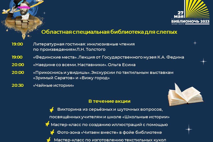 Сегодня, 27 мая, Саратов присоединится к всероссийской акции «Библионочь — 2023». Об этом сообщает пресс-служба регионального министерства культуры.