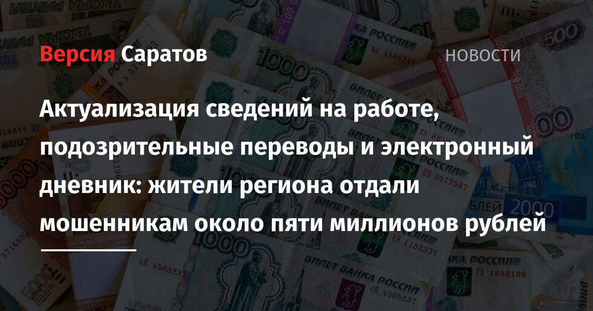 Жители Саратовской области отдали мошенникам около пяти миллионов рублей. Об этом рассказали в УМВД по Саратову.