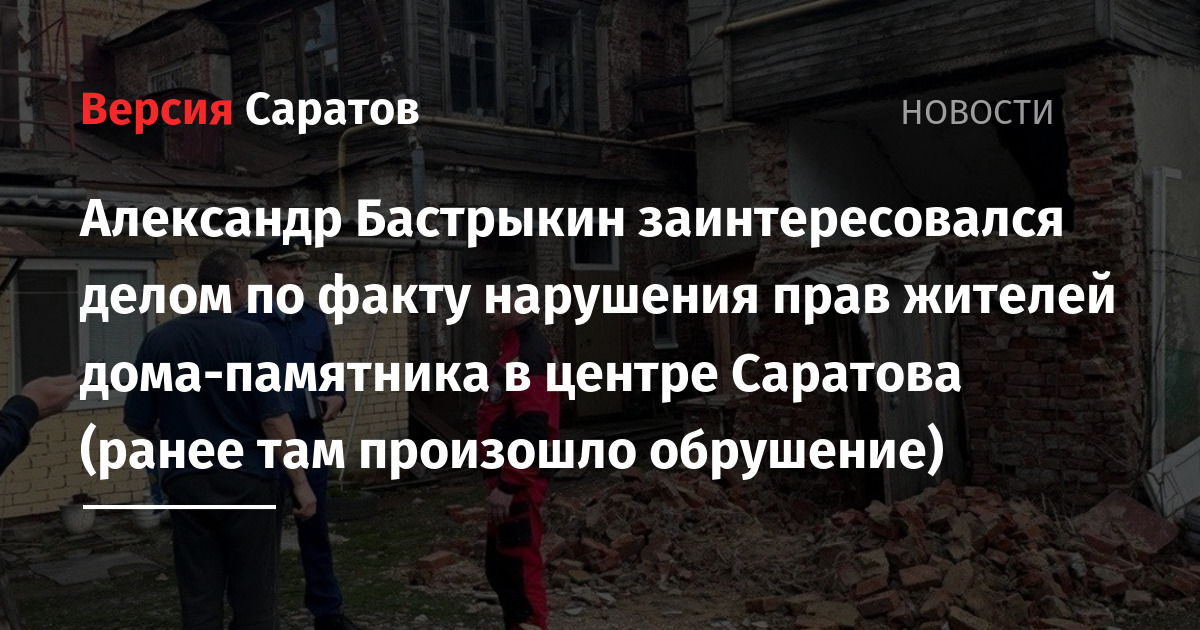 Председатель СК России Александр Бастрыкин поручил доложить по уголовному делу по факту нарушения прав жильцов ветхого дома в Саратове. Об этом сообщили в Информационном центр СК России.