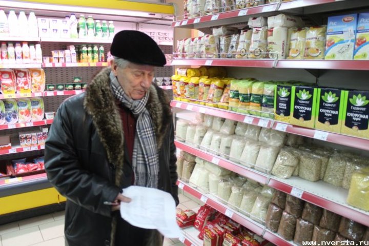 Члены Общественной палаты Саратовской области сегодня посетили три магазина с целью проконтролировать цены на продукты питания и качество товаров. Несколько представителей палаты во главе с ее председателем Александром Ландо, представители Роспотребнадзора и других ведомств обнаружили на витринах несвежие продукты, яблоки из Франции, а также остались недовольны качеством соблюдения санитарных норм. Участники рейда сначала отправились в магазин "Гроздь" на пресечении улиц Чапаева и Рабочей. Он открылся ровно месяц назад, заменив собой магазин сети "Милослав". Там Ландо сразу обратил внимание на несвежие овощи и фрукты. Директор магазина Елена Вилкова пояснила, что подгнивший товар якобы не успели убрать с витрины. Также общественников возмутило, что на витринах с молочной продукцией присутствовал сыр, расфасованный порционно более положенных по закону трех дней назад. Также выяснилось, что товары хранятся в подсобках не на поддонах, а просто на полу, а расфасовка происходит в помещении, более похожем на кладовку и не соответствующем санитарным нормам и требованиям.