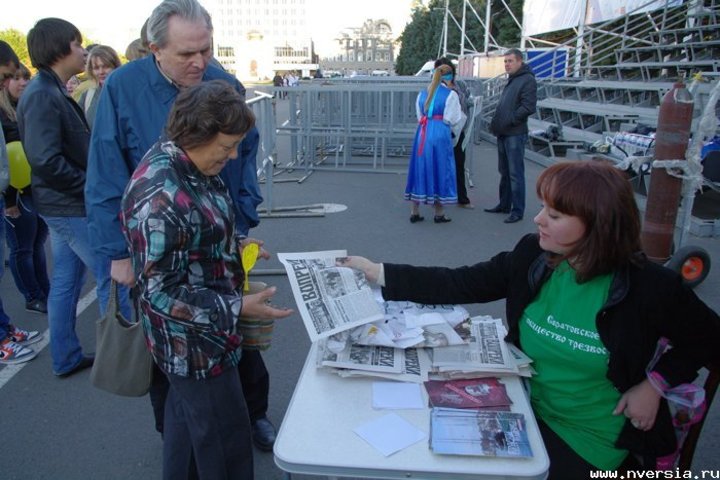 Вчера вечером на Театральной площади прошло празднование дня трезвости. В нем принимали участие учащиеся саратовских школ, председатель общественной палаты области Александр Ландо, председатель общества трезвости Наталия Королькова, депутат гордумы Василий Артин. Ведущие также объявили, что на мероприятии присутствует министр по национальным отношениям Борис Шинчук, однако того не сцене не оказалось.