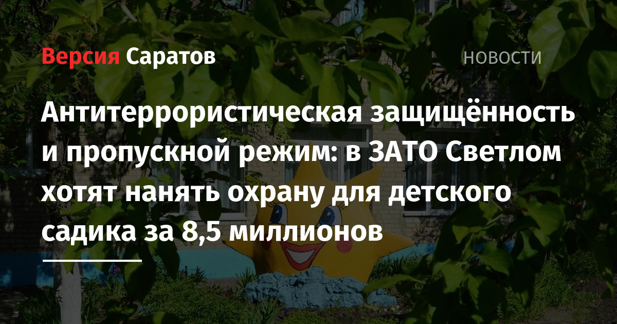 Детский сад в ЗАТО Светлом в Саратовской области готов отдать больше 8 млн рублей за охрану. Соответствующая информация появилась на сайте госзакупок.