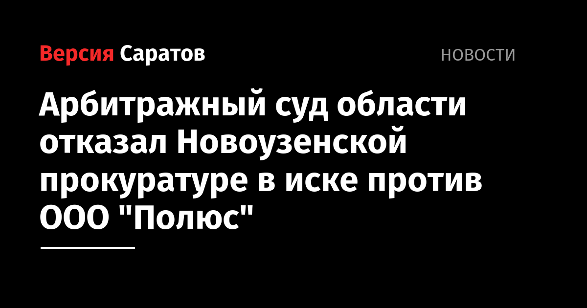 На прошлой неделе арбитражный суд Саратовской области отказал прокуратуре Новоузенского района в удовлетворении их требований по привлечению к ответственности ООО "Полюс", которому принадлежит нефтеперерабатывающий завод в Новоузенске.
