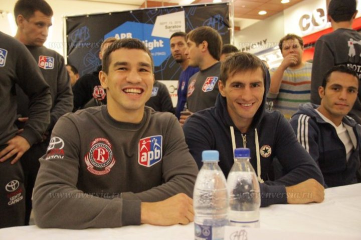 В Саратове в торговом центре "Триумф Молл" прошло публичное взвешивание и процедура face-to-face ("битва взглядов") для боксеров, которые завтра, 13 сентября, будут принимать участие в боях в ледовом дворце спорта "Кристалл". Участники также ответили на вопросы журналистов. В пресс-конференции приняли участие саратовец Артем Чеботарев и украинец Дмитро Митрофанов, которые будут сражаться за титул чемпиона мира, а также спортсмены из Румынии, Египта, Эквадора, Германии, Кении и Франции. Все боксеры признались, что им понравился Саратов. Они поблагодарили местных жителей за теплый прием и организаторов за профессионализм. Представитель Румынии особенно отметил, что он был рад впервые в жизни увидеть в Парке Победы танк, который принимал участие в Великой Отечественной войне.