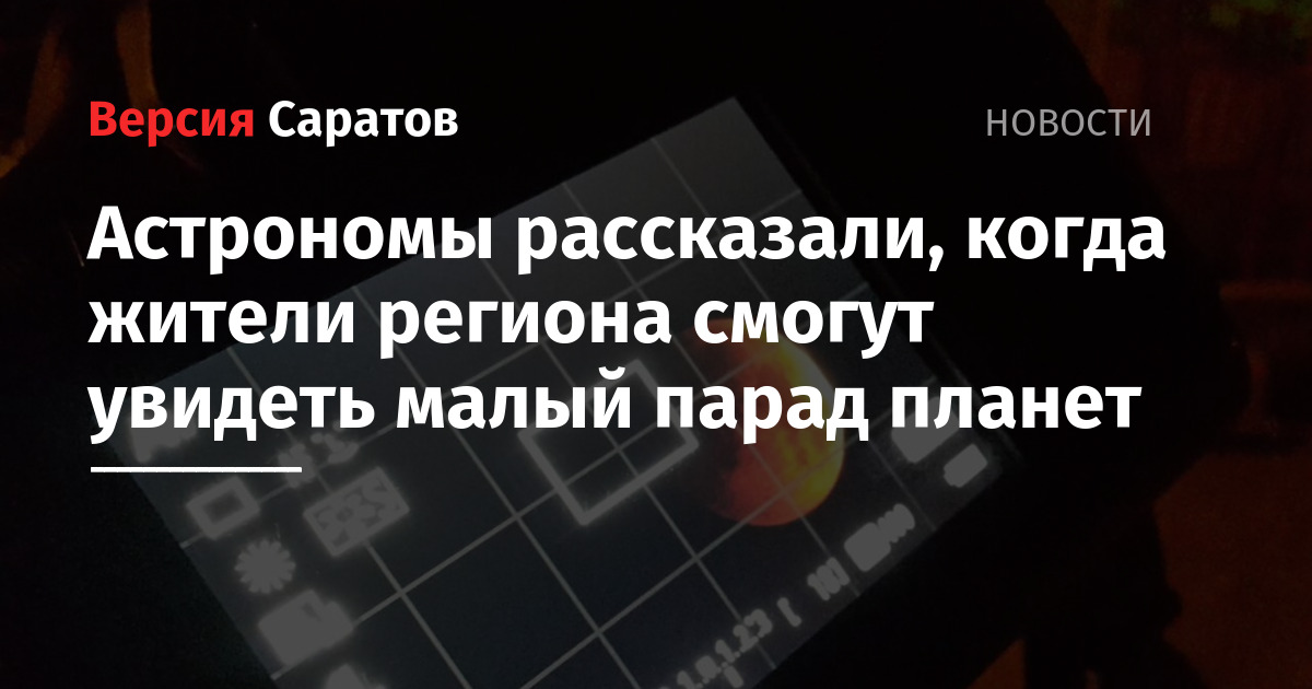 В период с 19:50 до 21:00 по саратовскому времени четыре планеты окажутся в узком секторе неба (20 градусов). В этом году малый парад составят Сатурн, Нептун, Меркурий и Венера. «Из этих четырех планет, при ясных погодных условиях, в течение часа после заката низко у западного горизонта будут видны только Сатурн и Венера, Меркурий возможно найти только в бинокль, а Нептун, если получится, только в телескоп», — добавили в Московском планетарии.