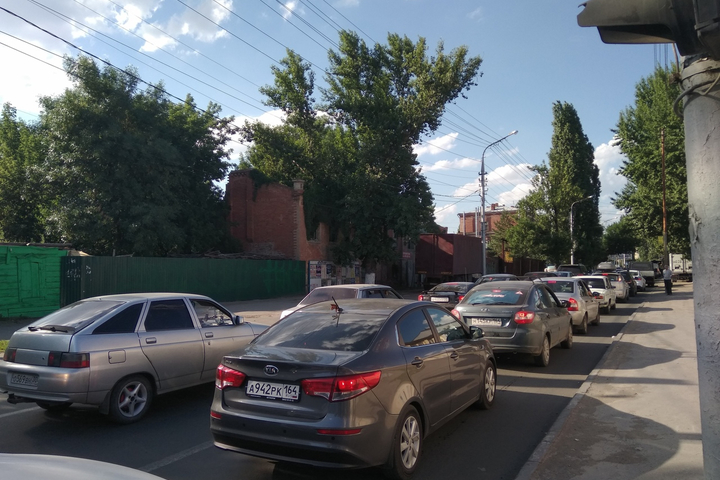 Машины заняли две полосы движения, из-за чего в час пик образовалась пробка. «Хотели проскочить, а теперь придется ждать инспекторов ГИБДД», — отмечают очевидцы.