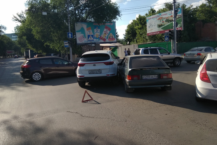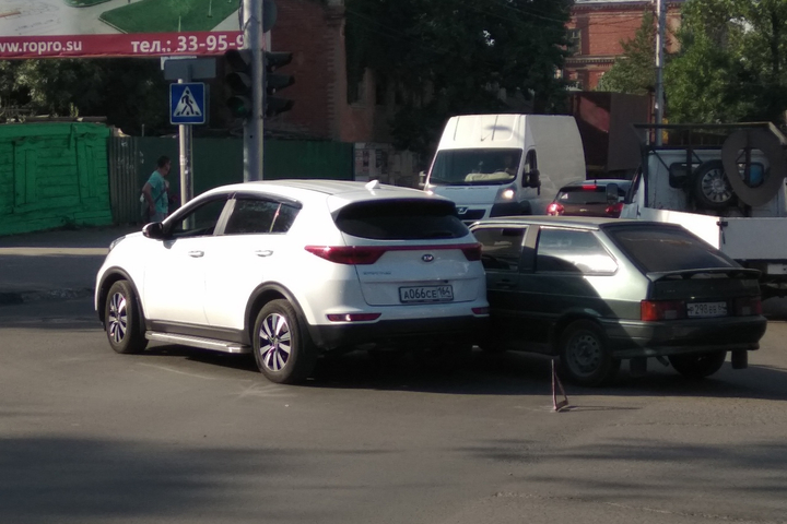 Сегодня днём на перекрестке в Саратове произошло ДТП. На пересечении Большой Горной и Университетской столкнулись Kia и «тринадцатая».