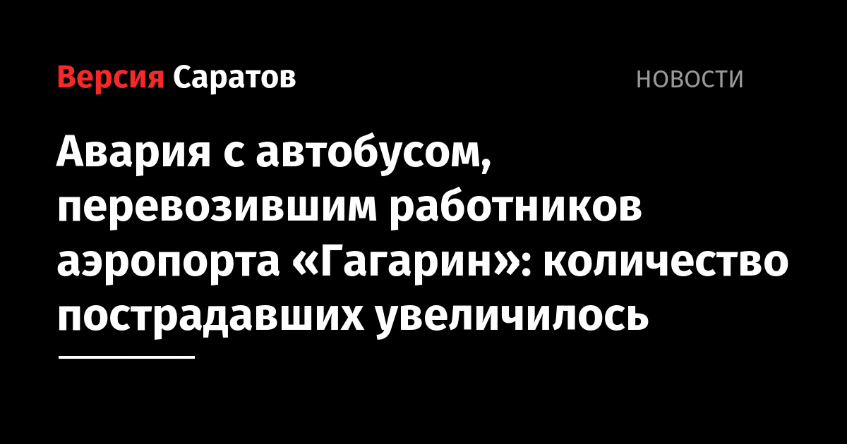 Напомним, авария случилась в 7:45 в месте, где федеральная трасса Р-228 «Сызрань — Саратов — Волгоград» пересекается с другой трассой, которая идёт на Тепловку и Базарный Карабулак. Там столкнулись Lada Vesta, которой управлял 53-летний мужчина, и маршрутный автобус Mercedes под управлением 37-летнего водителя, следующий из Саратова в аэропорт «Гагарин». Автобус перевозил работников аэропорта.