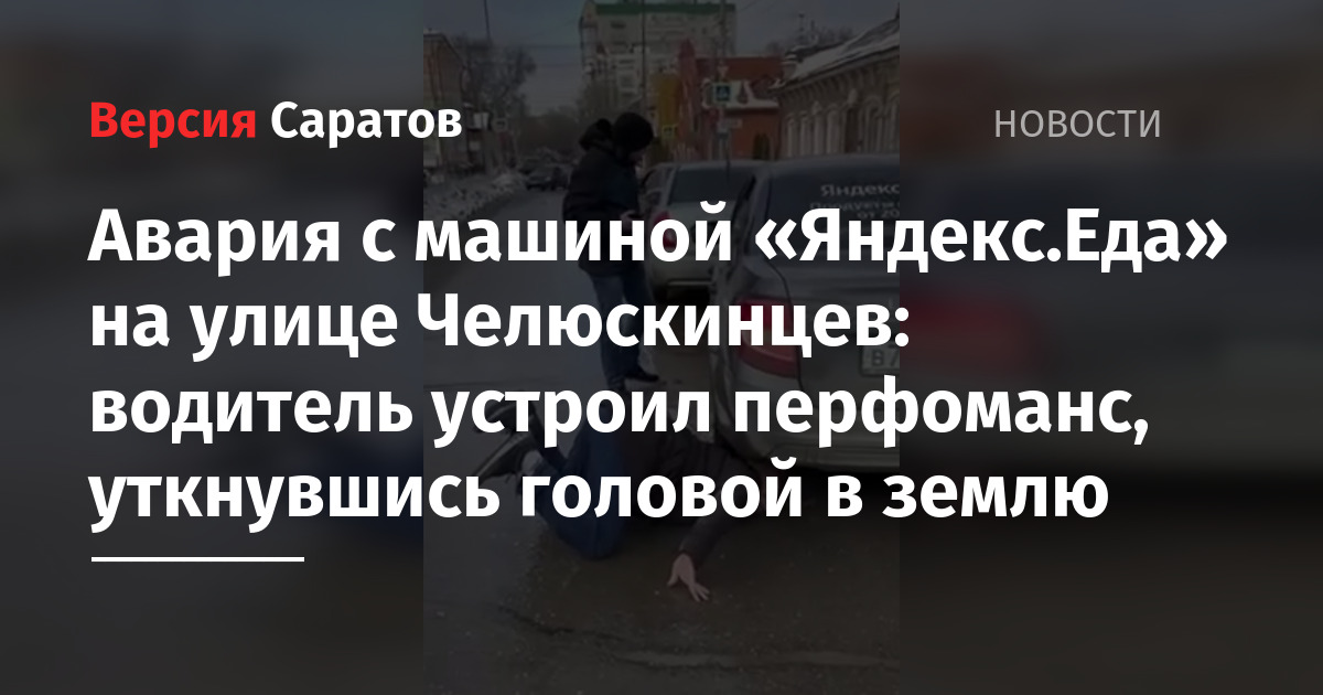 Авария с машиной «Яндекс.Еда» на улице Челюскинцев: водитель устроил перфоманс, уткнувшись головой в землю