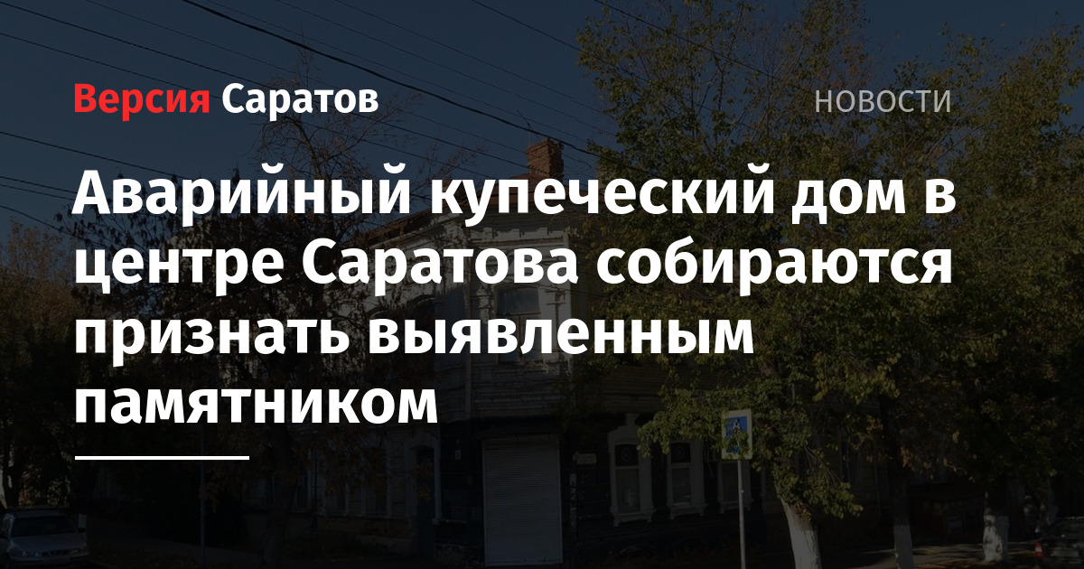 В Саратове собираются включить в список выявленных объектов культурного наследия аварийный дом в центре города. Соответствующий проект приказа подготовлен и ожидает заключения независимой экспертизы.