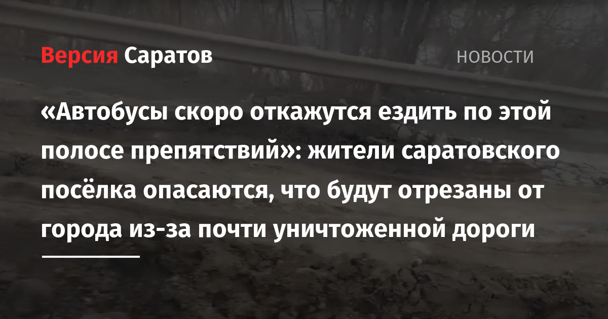 Жители посёлка Красный Текстильщик в Гагаринском районе Саратова опасаются, что к ним перестанет ходить единственный автобус, потому что дорога к населённому пункту полностью разбита и по ней небезопасно ездить. Об этом анонимно сообщил один из сельчан в группе «Саратов онлайн» в соцсети «ВКонтакте».