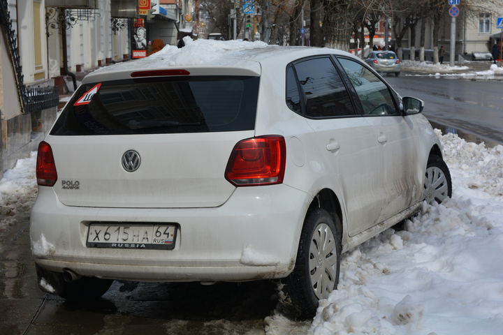 Сегодня в центре Саратова горожане заметили автохама, который припарковался на тротуаре по улице Горького. Автолюбитель оставил свой Volkswagen Polo у входа в кальянную.
