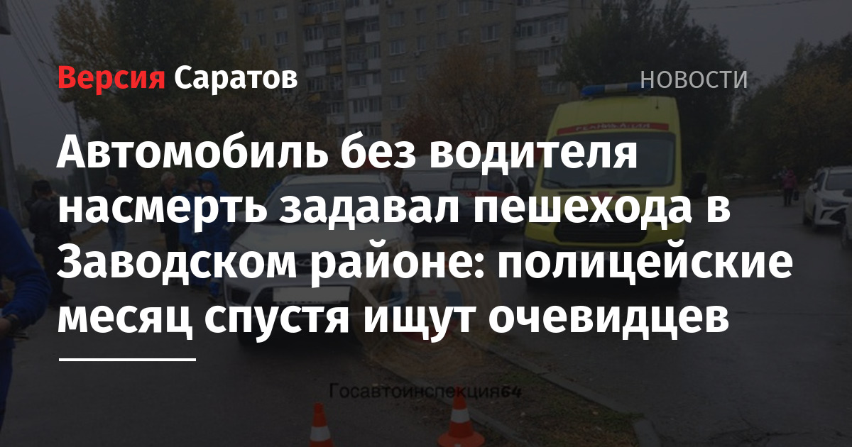 В Саратове полицейские разыскивают очевидцев ДТП, которое произошло месяц назад в Заводском районе. Автомобиль без водителя покатился и насмерть сбил пешехода.