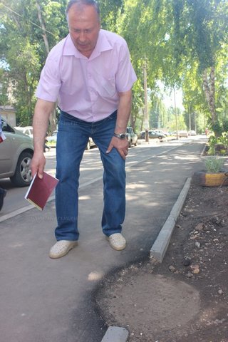 Общественники посетили двор на улице Степной, 11. В нем, как и во всех 12-ти дворах, вошедших в муниципальную программу, укладкой асфальта и заменой бордюрного камня занималась вольская фирма ООО "Автотрасса". Запяткин показал, что изначально в проектах не учли установку пандусов для въезда на тротуар и возле подъездов дома. Некоторые жильцы даже выступали против, заявив, что в их доме нет инвалидов. Но "Доступная среда" должна быть и для инвалидов, и для детских колясок, поэтому возле бордюров в некоторых местах сгладили съезды, уложив асфальт.