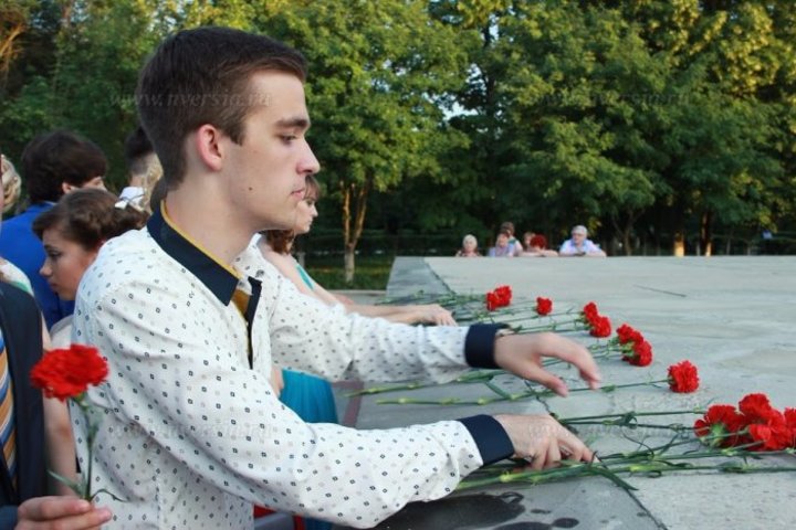 Почтив память погибших воинов минутой молчания, одиннадцатиклассники направились на выпускной бал. В ходе торжественного мероприятия выпускников поздравили директор, родители, родные и близкие, а также друзья.