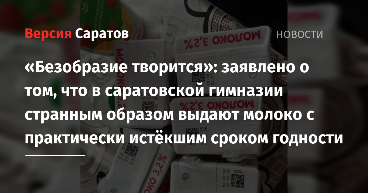В саратовской гимназии детям якобы дают молоко с практически истёкшим сроком годности. Об этом ИА «Версия-Саратов» рассказала читательница Алена.