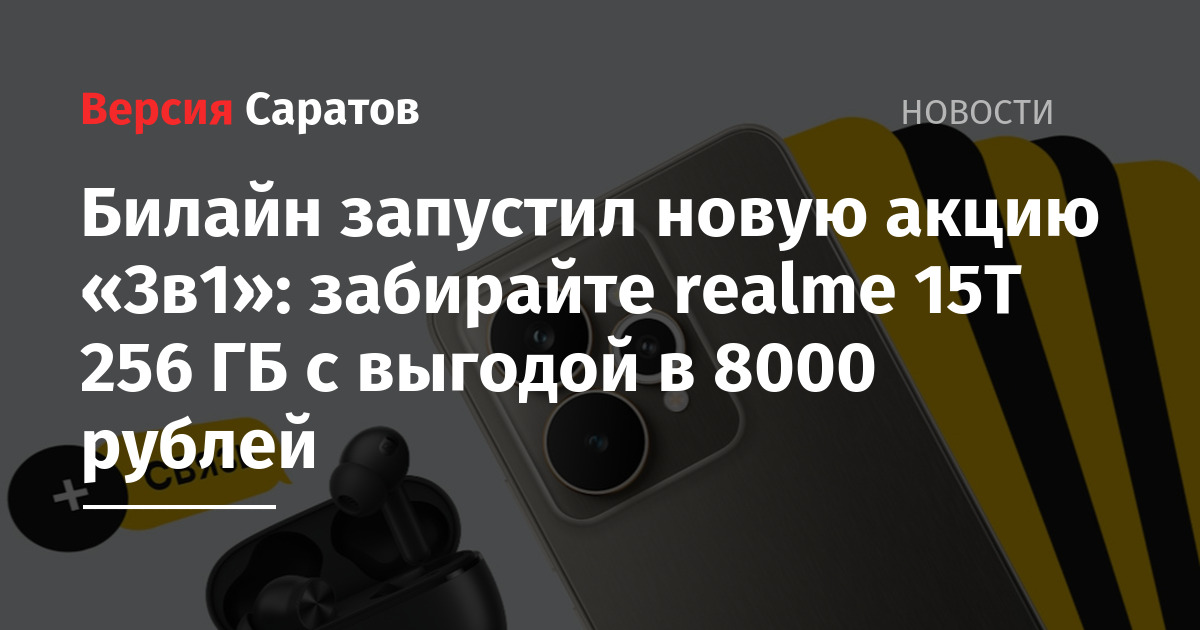 Одно из самых интересных предложений акции — realme 15T 256 ГБ. При покупке смартфона в составе выгодного комплекта в интернет-магазине Билайна клиент получает по цене смартфона 6 000 бонусных рублей на связь и фирменные наушники realme. Общая выгода при покупке realme 15T 256 ГБ в рамках акции 8 000 рублей. А совершая покупку в офисах обслуживания Билайна, вместо наушников можно выбрать другие товары — умные часы или колонки, подписки на Книги Билайн и Облако Билайн, настройки, услуги и другое.