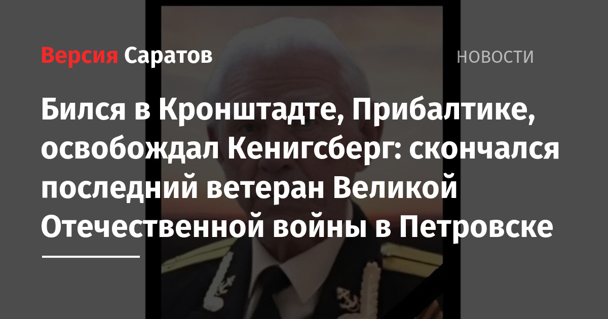 Бился в Кронштадте, Прибалтике, освобождал Кенигсберг: скончался последний ветеран Великой Отечественной войны в Петровске