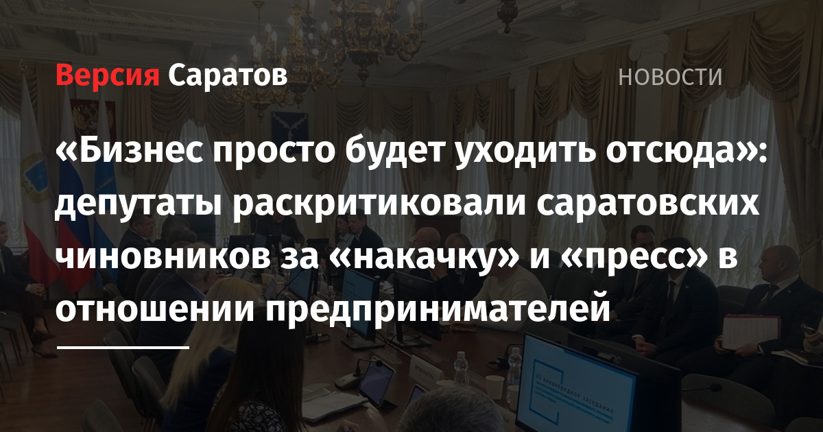 «У нас в этом году не было от вас предложений по созданию условий для развития предпринимательства в городе Саратове в тех рамках, которые мы можем предоставить. Очевидно, что сейчас мы боремся за то, чтобы выводить зарплату из тени, чтобы средняя зарплата увеличилась, но увеличивать ее только накачками и прессом на бизнес невозможно. Бизнес просто будет уходить отсюда, без каких-то преференций.