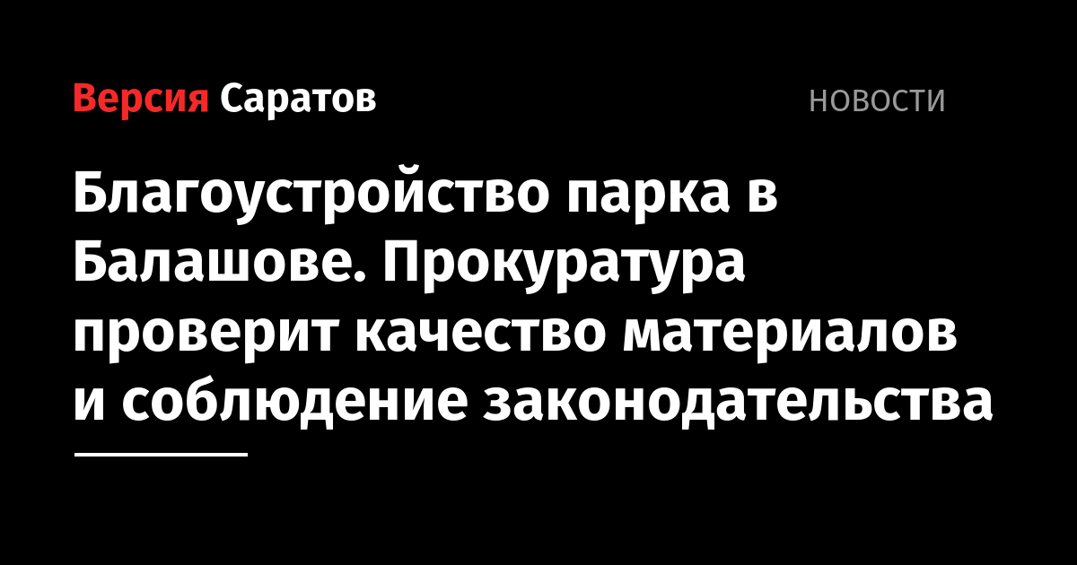 Благоустройство парка в Балашове. Прокуратура проверит качество материалов и соблюдение законодательства