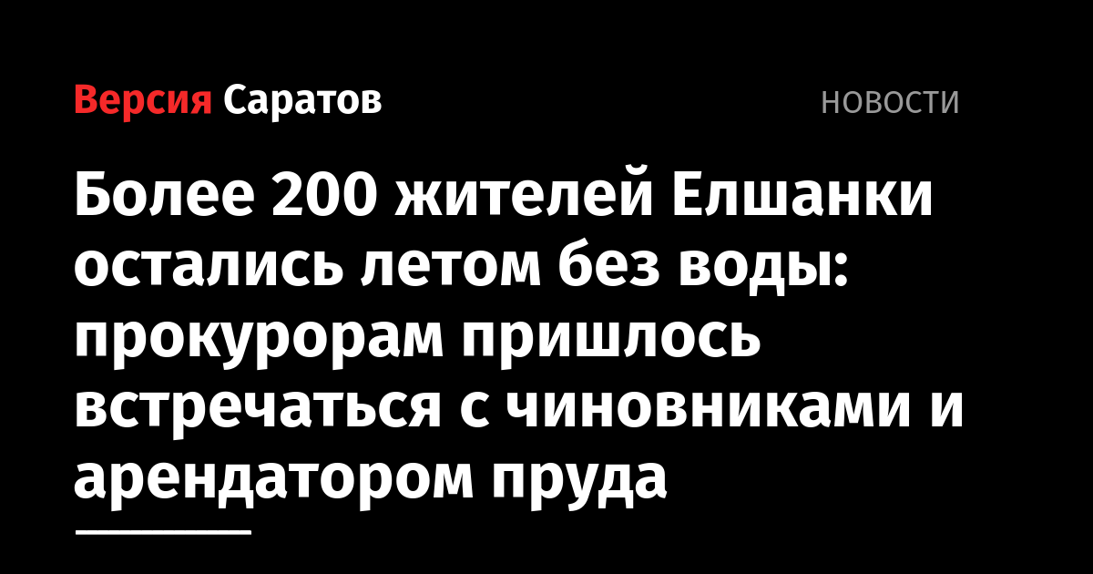 В селе Елшанка Новобурасского района восстановлена подача воды. Произошло это после вмешательства сотрудников прокуратуры Саратовской области.