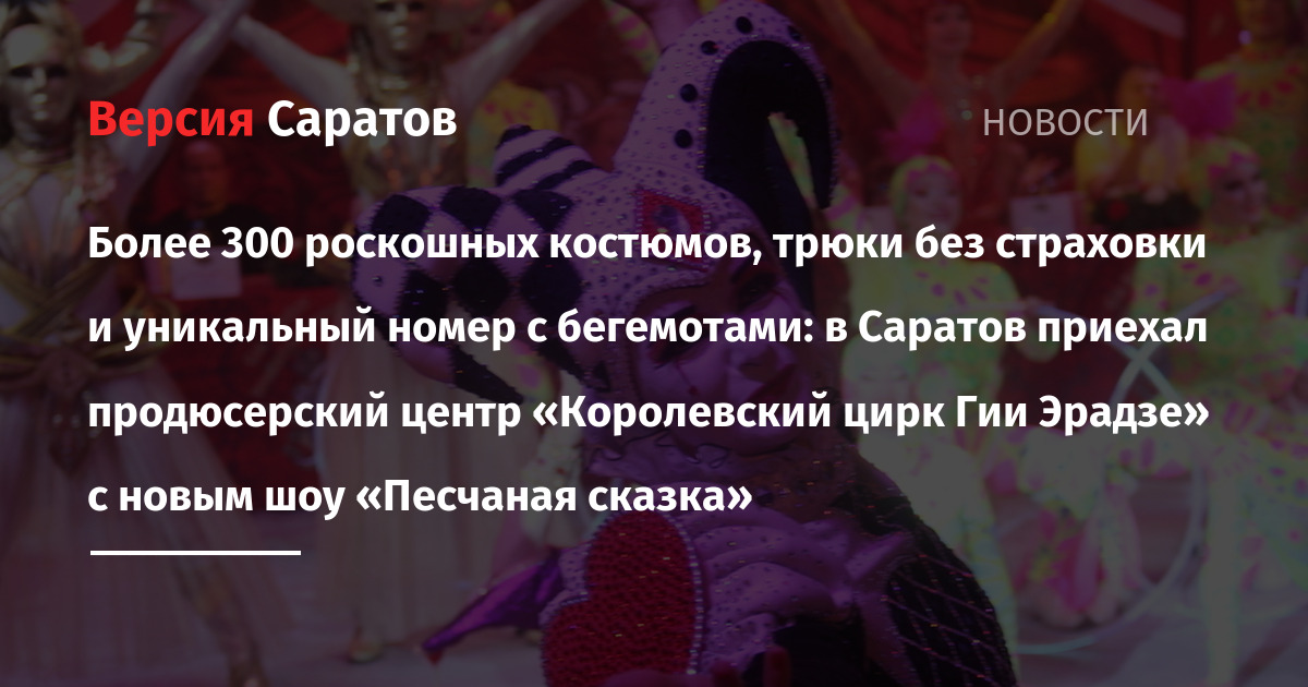 Более 300 роскошных костюмов, трюки без страховки и уникальный номер с бегемотами: в Саратов приехал продюсерский центр «Королевский цирк Гии Эрадзе» с новым шоу «Песчаная сказка»