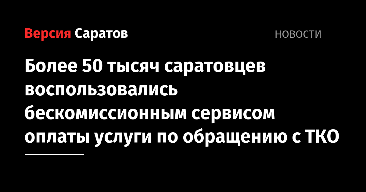 Более 50 тысяч саратовцев воспользовались бескомиссионным сервисом оплаты услуги по обращению с ТКО