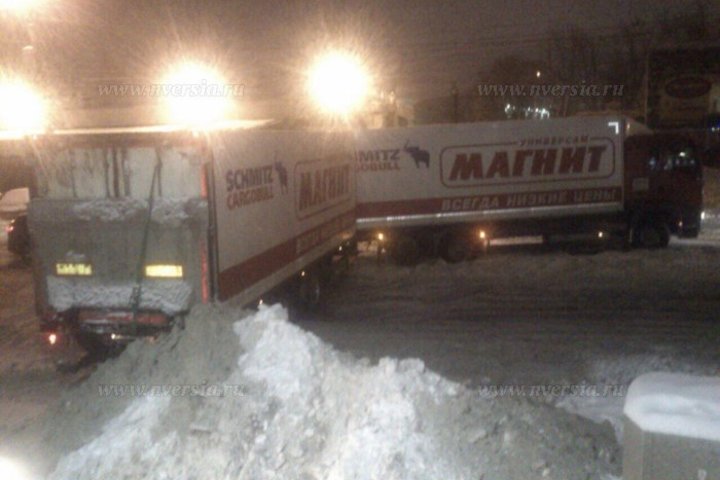 В Саратове фура, протаранив легковушку, перегородила трамвайные пути на улице Огородная. ДТП произошло у магазина "Магнит".