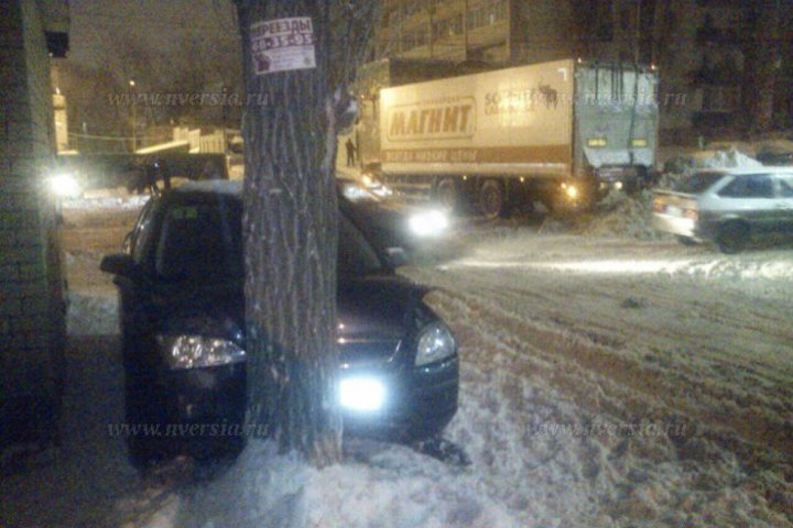 Как сообщают очевидцы произошедшего, водитель большегруза подъехал к супермаркету для разгрузки товара и не заметил припаркованный там Ford Focus. "Фура в буквальном смысле вмяла иномарку в дерево", - отмечают прохожие.
