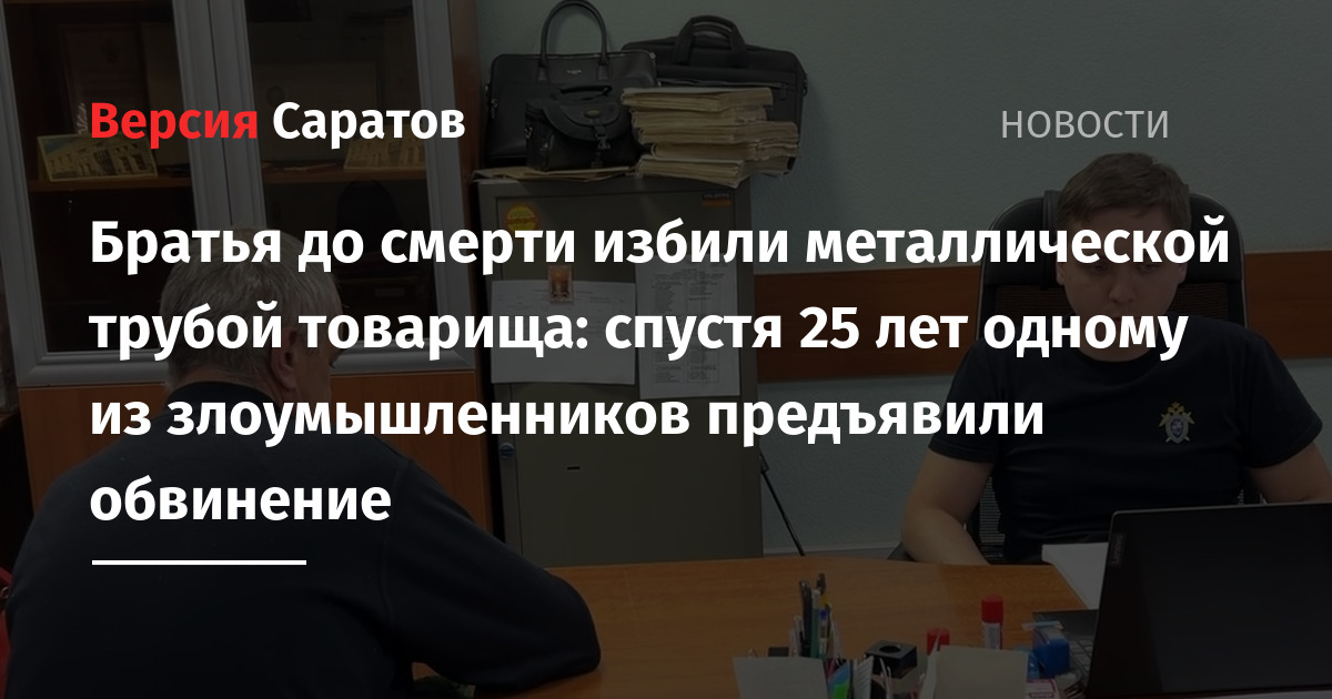 По информации ведомства, 3 декабря 2000 года мужчина и его брат в сторожевом вагончике на улице Крылова в Ртищево избили, в том числе металлической трубой, 28-летнего знакомого. Пострадавший скончался на месте. Злоумышленники скрылись.