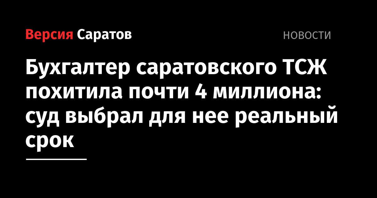 Бухгалтер саратовского ТСЖ похитила почти 4 миллиона: суд выбрал для нее реальный срок