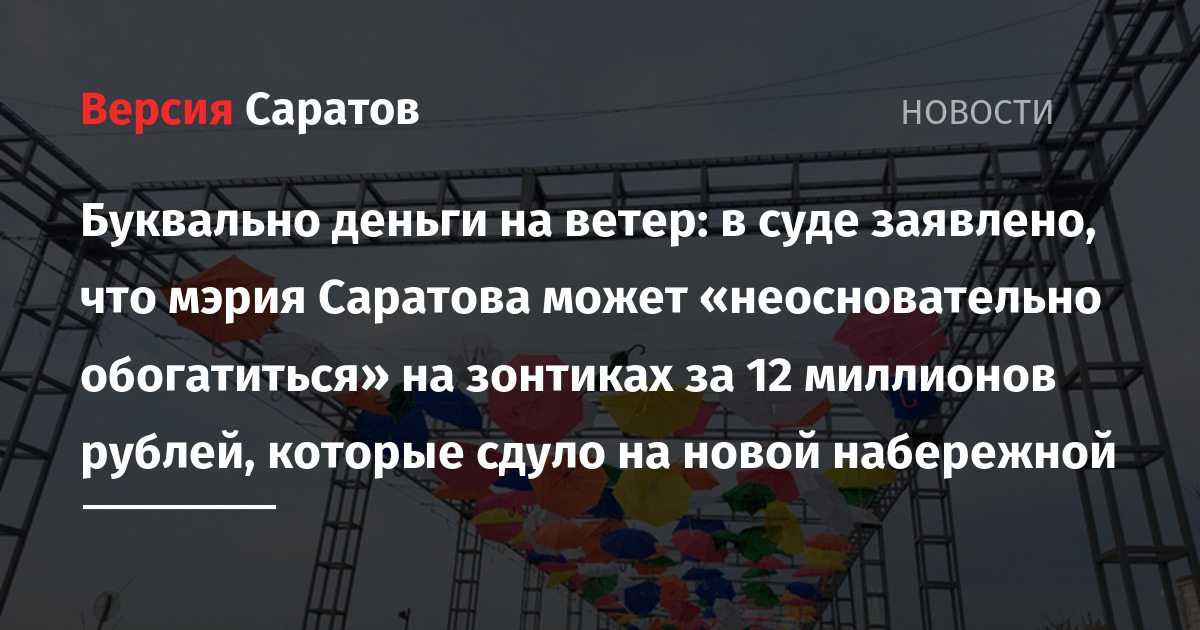 В Арбитражном суде Саратовской области в самом разгаре судебное разбирательство из-за дорогостоящей конструкции с зонтиками, которая должна была обеспечить «формирование благоприятной психологической атмосферы» и повысить туристическую привлекательность города.