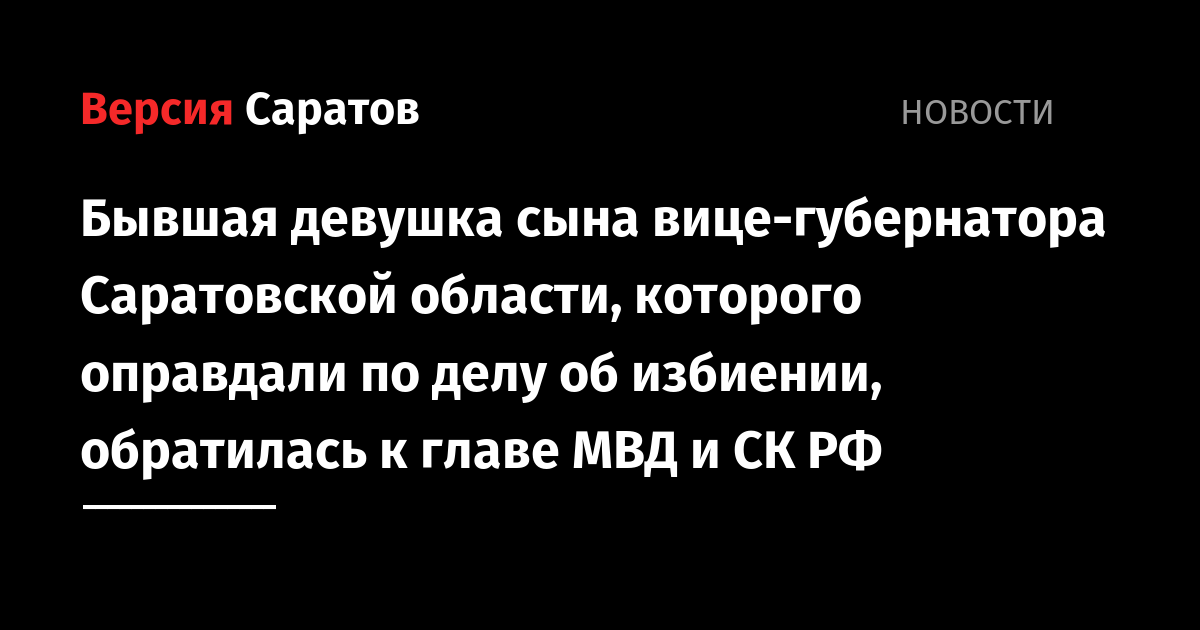 Бывшая девушка сына вице-губернатора Саратовской области Игоря Пивоварова — Ивана, которого оправдали по делу об избиении, обратилась к главе МВД России Владимиру Колокольцеву и руководителю СУ СК РФ Александру Бастрыкину. Видеозаписи обращений Кристина Хруслова прислала в редакцию ИА «Версия-Саратов».