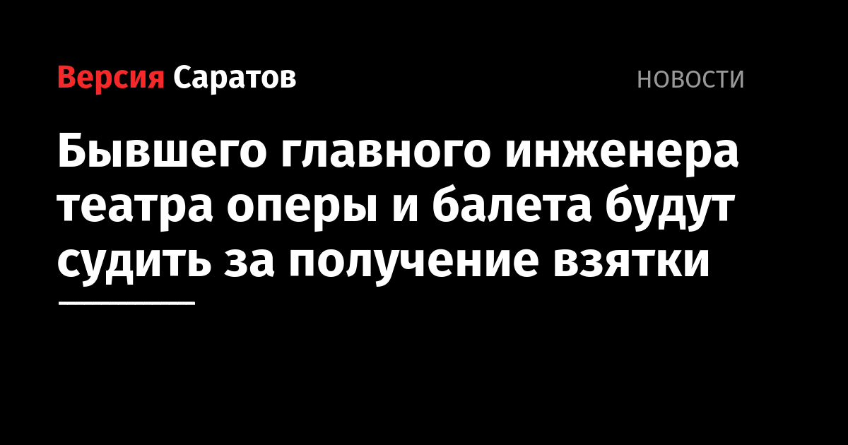 В Саратове завершено расследование уголовного дела в отношении бывшего главного инженера Саратовского академического театра оперы и балета. Его обвиняют в получении взятки в особо крупном размере (ч. 6 ст. 290 УК РФ). Об этом сообщили в СУ СК по региону.