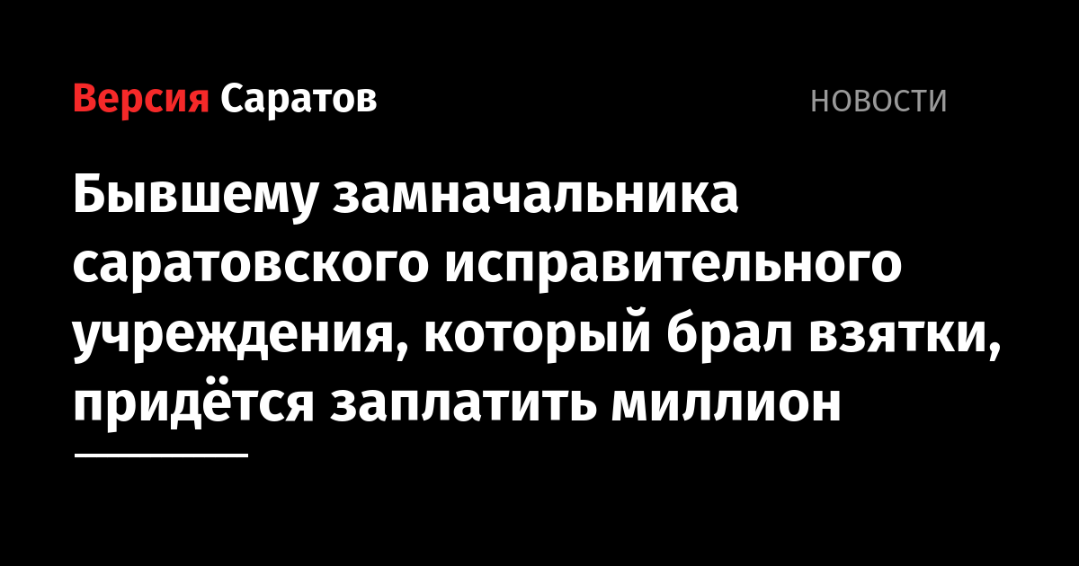 Бывшему замначальника саратовского исправительного учреждения, который брал взятки, придётся заплатить миллион