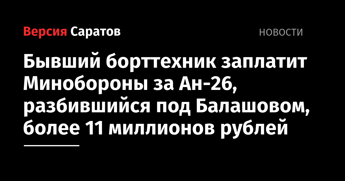 Минобороны РФ взыскало с бывшего борттехника-инструктора Юрия Терешина стоимость самолёта Ан-26, разбившегося в Саратовской области 30 мая 2017 года. Об этом сообщает «Коммерсантъ».