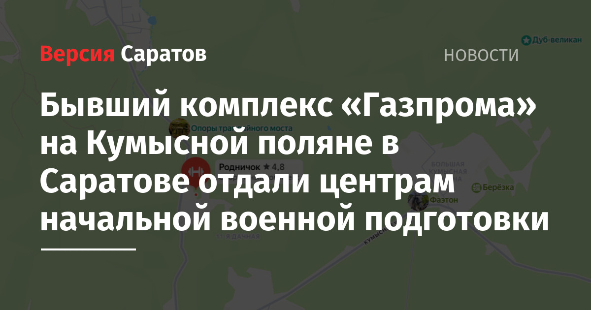 Бывший спортивно-оздоровительный комплекс «Газпрома» «Родничок» на Кумысной поляне в Саратове отдали под военно-патриотические центры. Об этом стало известно в ходе заседания комитета по делам ветеранов Саратовской областной думы, которое состоялось сегодня, 18 февраля.