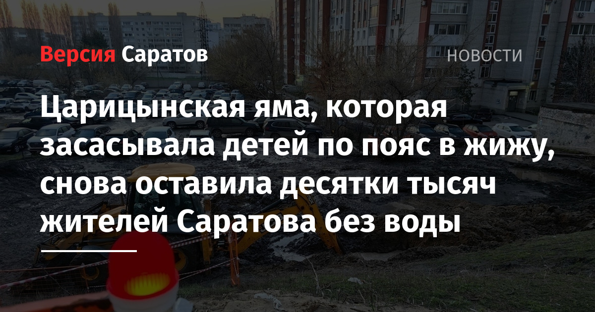Однако тогда яму сотрудники водоканала закапывать не стали, что вызвало подозрение у местных жителей в недозавершённости «завершённых» работ. Теперь опасения подтвердились — в ночь с 14 на 15 апреля произошло очередное затопление территории, после чего десятки тысяч жителей Саратова вновь остались без воды.