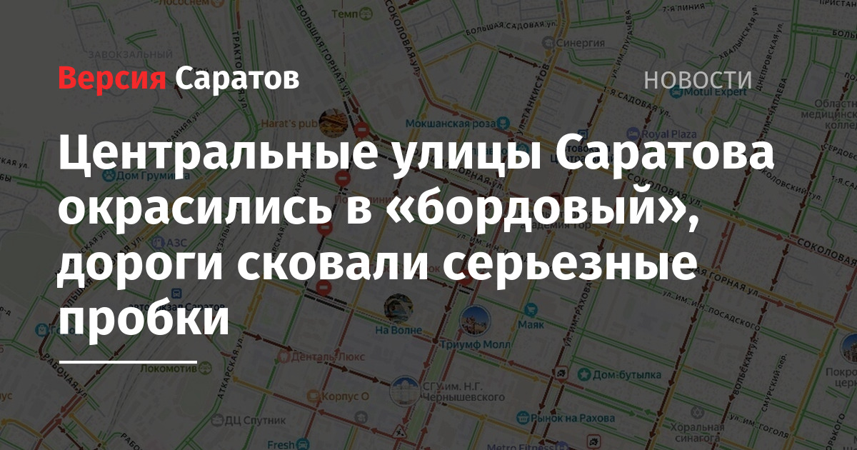 Наиболее сложная ситуация наблюдается в центральной части города. В бордовый цвет окрашены улицы Соколовая, Большая Горная, Астраханская, Рахова, Чапаева. Сильно затруднено движение на Вольской, Московской.