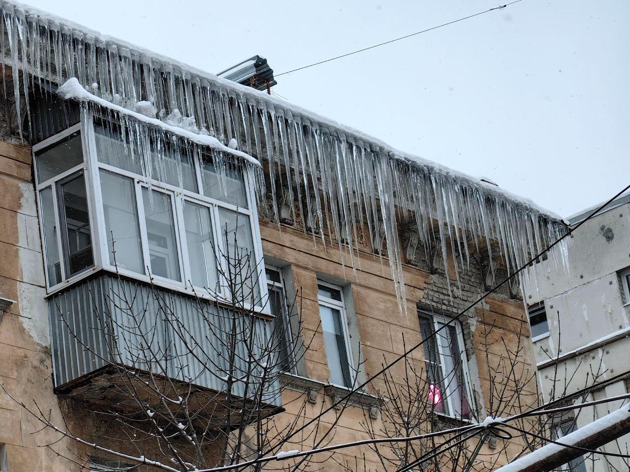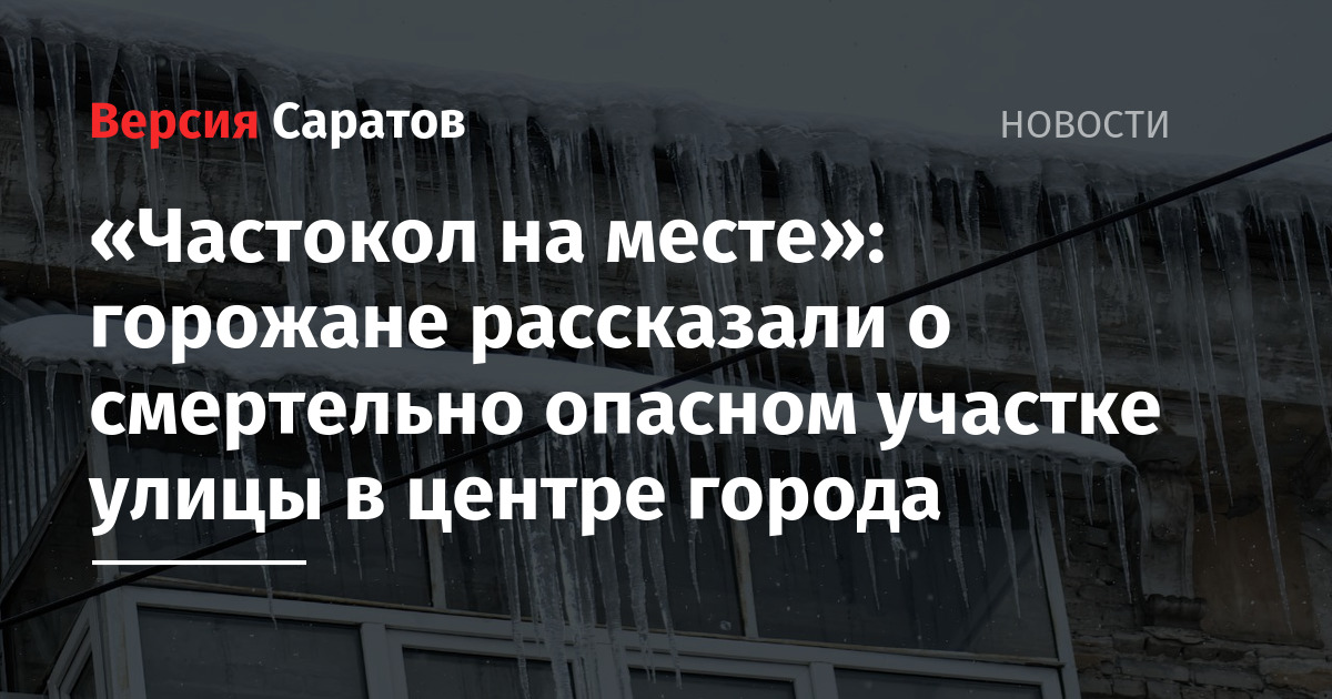 Саратовцы рассказали, что метровые сосульки, нависшие на кровле дома № 6 в Мирном переулке, никуда не делись за последние две недели. «Частокол на месте. Сосульки только длиннее стали, — рассказал местный житель. — Я видел, как на Московской недавно сбивали с помощью автокрана, а о нас, похоже, все забыли».
