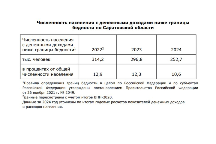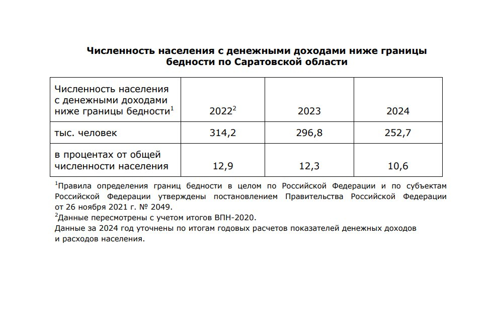 В прошлого году Саратовстат публиковал данные, что на конец 2024 года за чертой бедности были 255,3 тысячи жителей Саратовской области. Теперь эти данные уточнены.