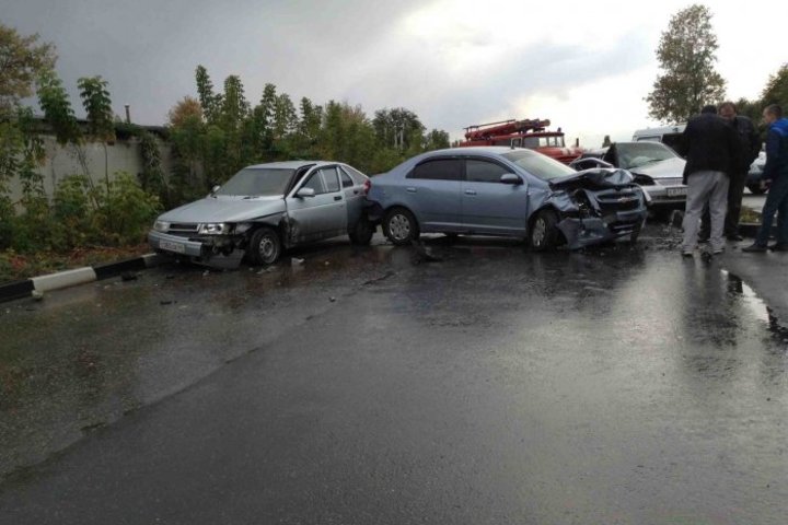 В Саратове на улице Блинова столкнулись три автомобиля. В результате ДТП пострадали четыре человека. В машинах также были двое детей, которые отделались испугом. Chevrolet Cobalt из-за влажной дороги не смог затормозить и врезался в поворачивающую "Ладу Приора", от которой отлетел в ВАЗ-2112.